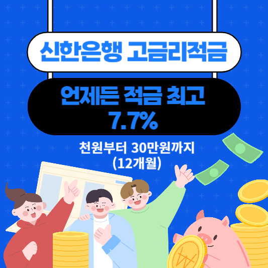 이자높은 고금리 적금 뭐가 있을까? 신한은행 언제든 적금 무려 7.7프로!