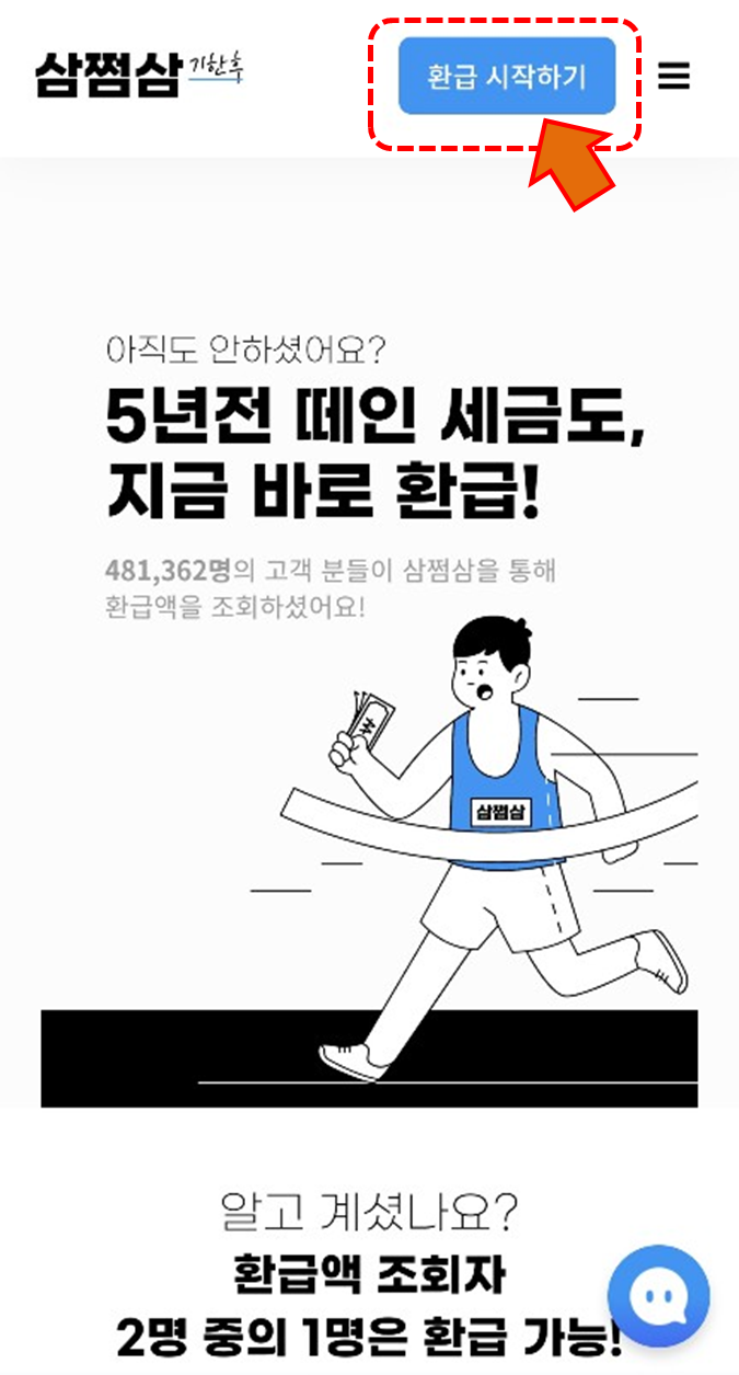 지금 환급받으러 가기를 클릭하면