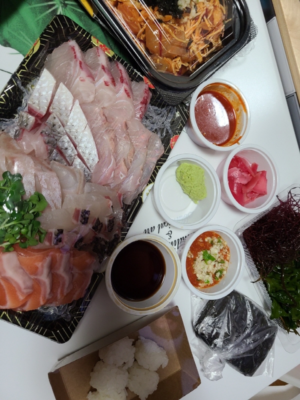 분당 서현역 횟집 마량수산 배달 후기 급 회가 땡겨 배달앱을 써치 하던 중 발견한 곳! 난 일단 처음 들어보는 가게는 리뷰 수랑 높은 평점 위주로 보기에.. 괜찮을 거 같아 시켰다. 보통 회 한