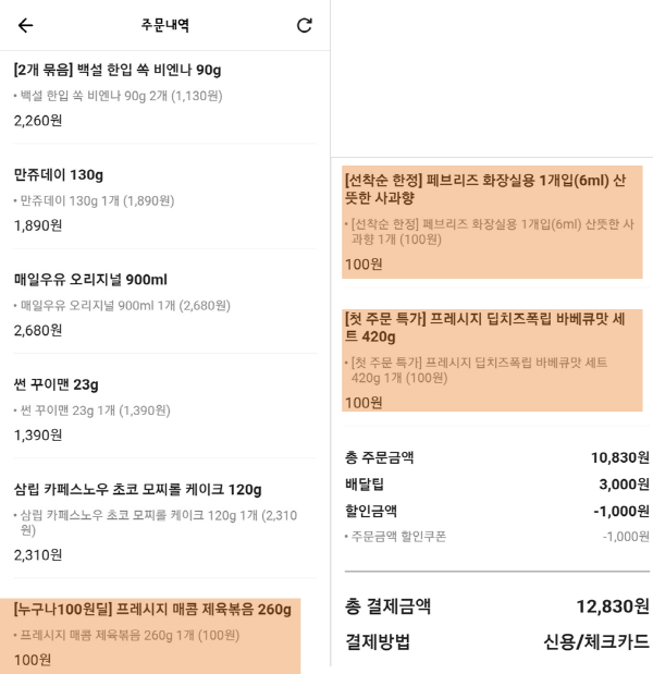 아.. 3만원 이상 사면 배달료는 무료이다.