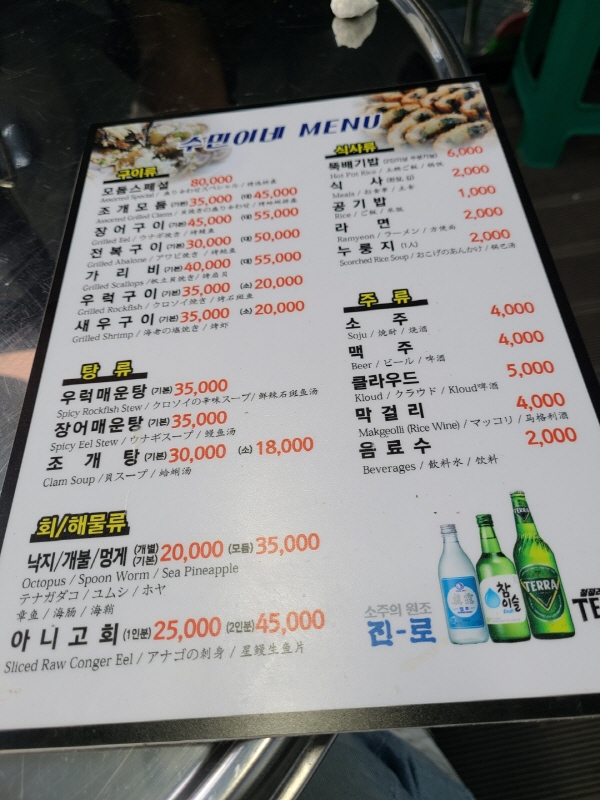이 집은 조개, 장어구이가 유명하니