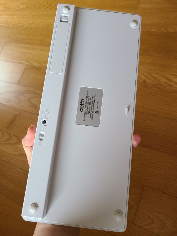 키보드 뒷면에 건전지를 넣고