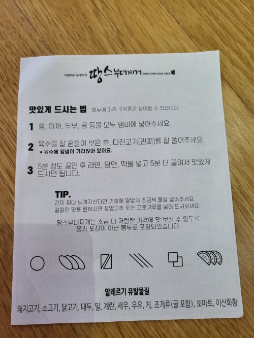 부대찌개가 생각날 때면 땅스에서 시키곤 한다 ㅋ