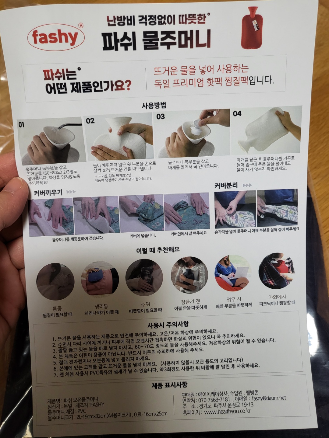 전기매트 대용으로 급하게 구입한 파쉬 물주머니 구입후기